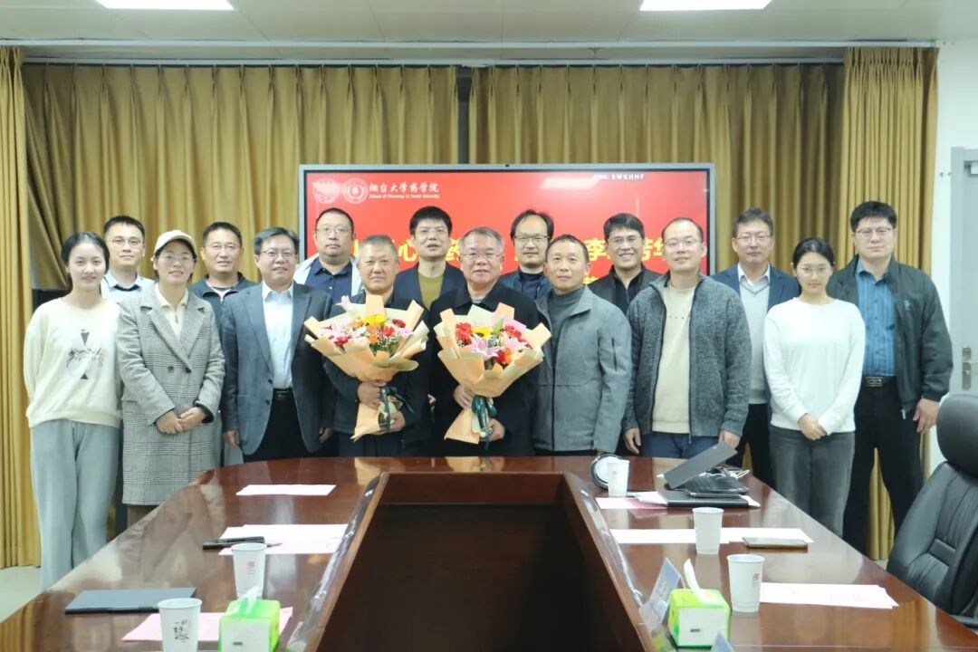在情谊真挚的座谈环节,教职工代表纷纷发言,共同回忆了与荣休教师并肩工作的感人往事,表达了深深的敬意和不舍之情。大家集体表示,两位老师治学严谨、待人热忱,是青年教师学术与成长道路上的重要引路人。在场校友代表也纷纷表达感念之情,2006级校友张卫国专程返校,同2001级校友、学院教师慕宏杰一同向两位教师致谢。他们表示将永远铭记恩师教诲,在各自岗位上践行药学人的责任使命。栾浩、孟庆国两位荣休教师在座谈会上深情回顾了数十载执教生涯,分享了教育战线上的点点滴滴,表达了对教育事业的深厚热爱和对学院的感激之情以及对学院未来发展的美好祝愿。他们寄语青年教师要珍惜时代机遇,勇担育人使命,为药学事业发展贡献智慧力量。仪式最后,教师代表刘昆、李凤向荣休教师敬献鲜花。芬芳的花束承载着全院师生最美好的祝福。全体与会人员合影留念,定格这一难忘时刻。